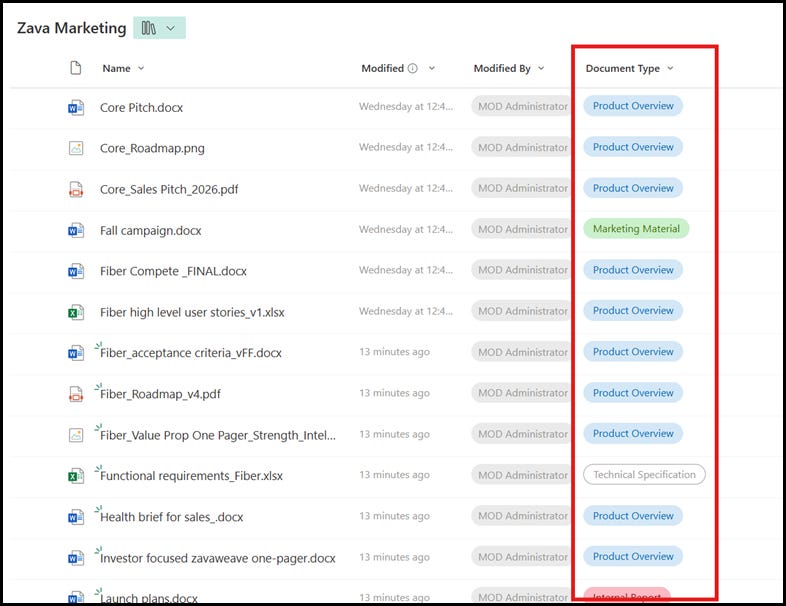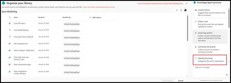 Now we have a document library equipped with an agent that automatically classifies documents as they are uploaded and created.
