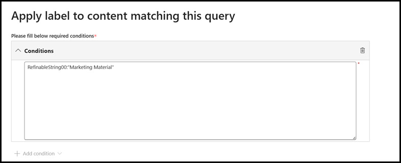 1. Next, we will specify the conditions in the policy that scans documents that are tagged with Marketing Material